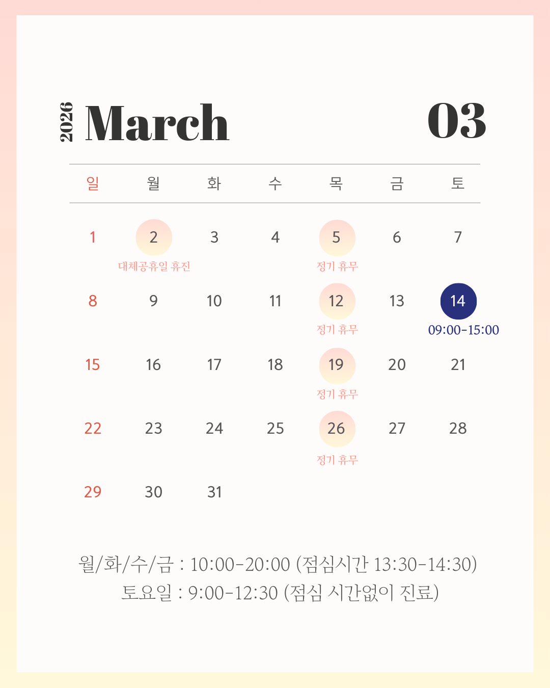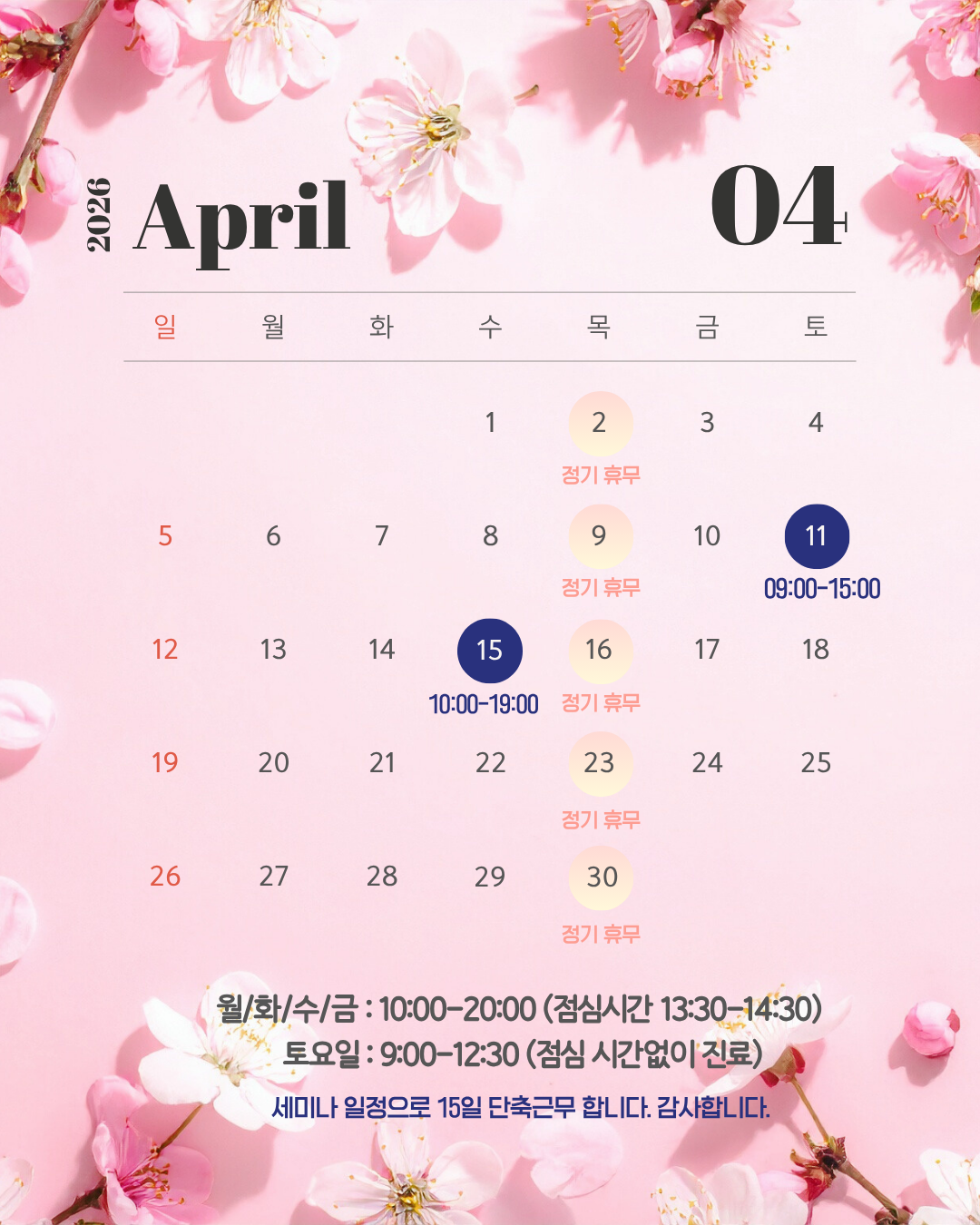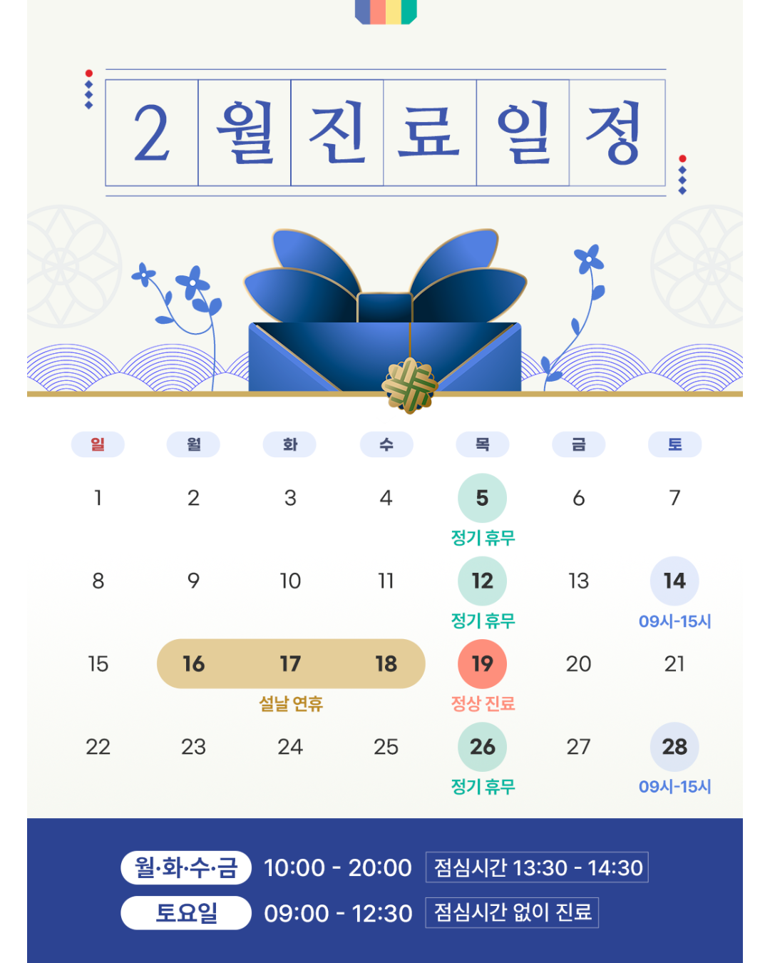 * 토요일은 점심시간 없이 진료합니다
