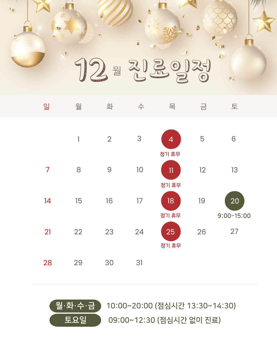 - 월,화,수,금 am 10:00 ~ pm 08:00