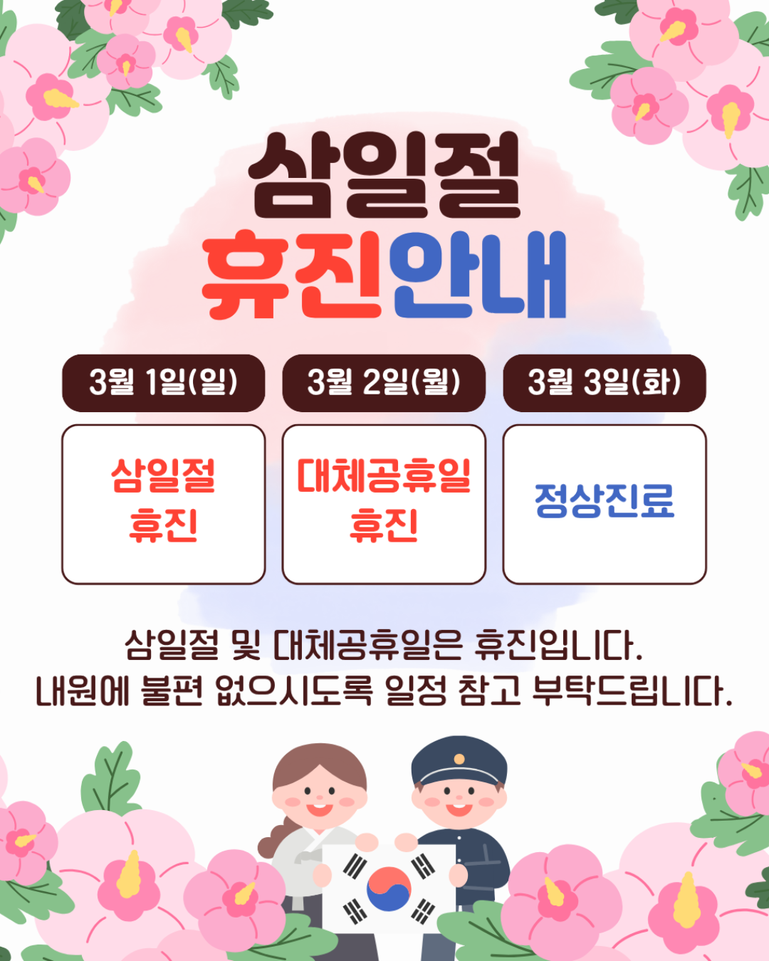 * 토요일은 점심시간 없이 진료합니다